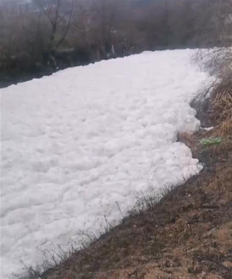 河面被白色泡沫覆盖(视频截图)